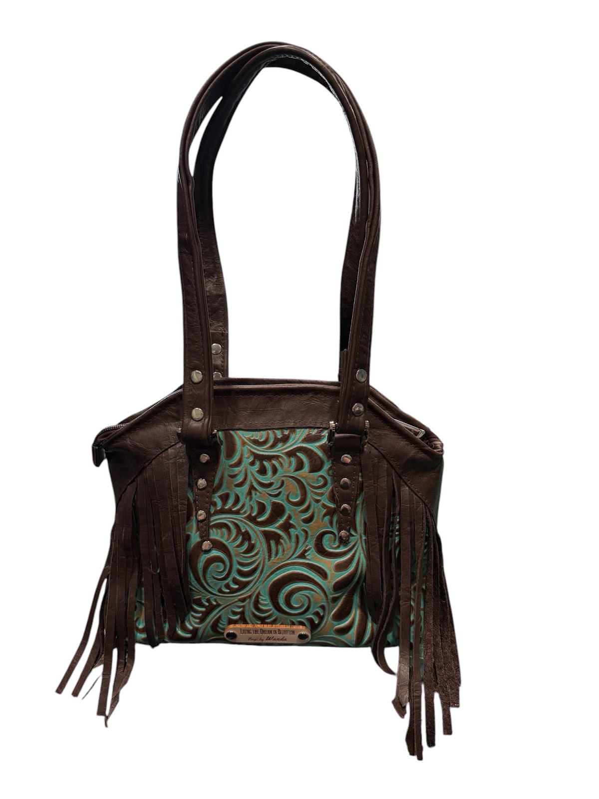 The “Peaceful” Shoulder Bag is a stunning blend of style, function, and durability. Crafted with premium leather, this bag is as eye-catching as it is practical. The exterior features a convenient phone and key pocket on the back, along with left and right access to the concealed carry zipper compartment. When not in use for carrying, this compartment serves as an additional pocket for extra storage. The interior is lined with waterproof canvas, offering unmatched durability that won’t tear and is easy to clean. Inside, you’ll find a slip pocket on one side and a zippered pocket on the other, providing ample room to keep your items organized. Designed to stand upright, the bag includes purse feet to protect it from touching the ground. A secure zippered top closure keeps your belongings safe, while the 28-inch handles allow for comfortable shoulder wear, whether you’re in a tank top or bundled up in a heavy coat. This one-of-a-kind bag offers the perfect combination of elegance, utility, and comfort—an everyday essential you’ll love for years to come. Measurers: 15 1/25”w x 12”t x 5 1/2”d Price: $325.00